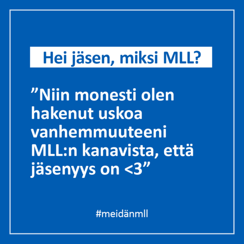Liittymällä jäseneksemme tuet tärkeää työtä lasten ja perheiden hyväksi, saat MLL:n Lapsemme-jäsenlehden sekä hyviä jäsenetuja ja -alennuksia. Jäsenemme saavat myös maksulliset kurssimme ja tilaisuutemme jäsenetuhintaan.